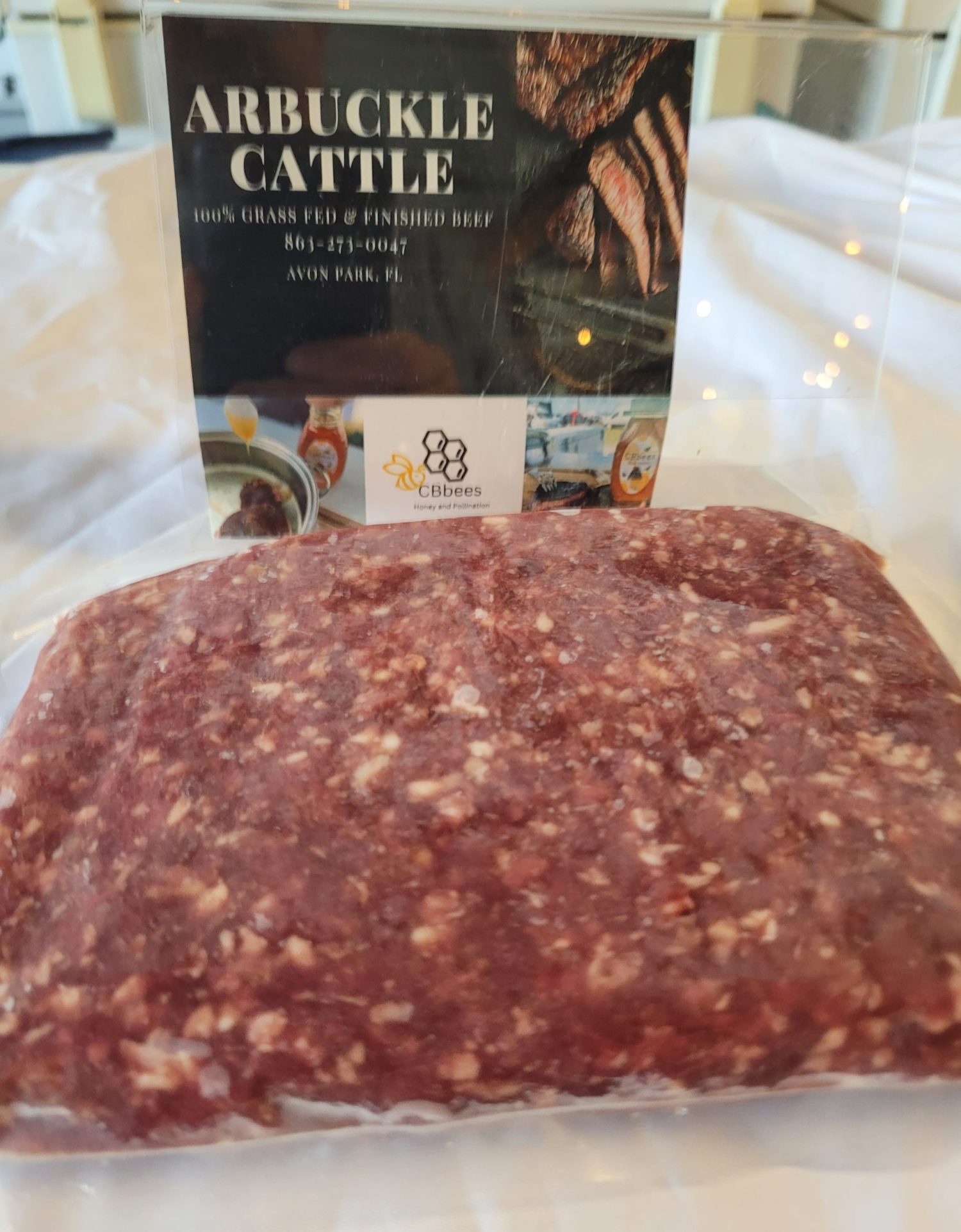 Grass fed ground beef, lean and very flavorful.