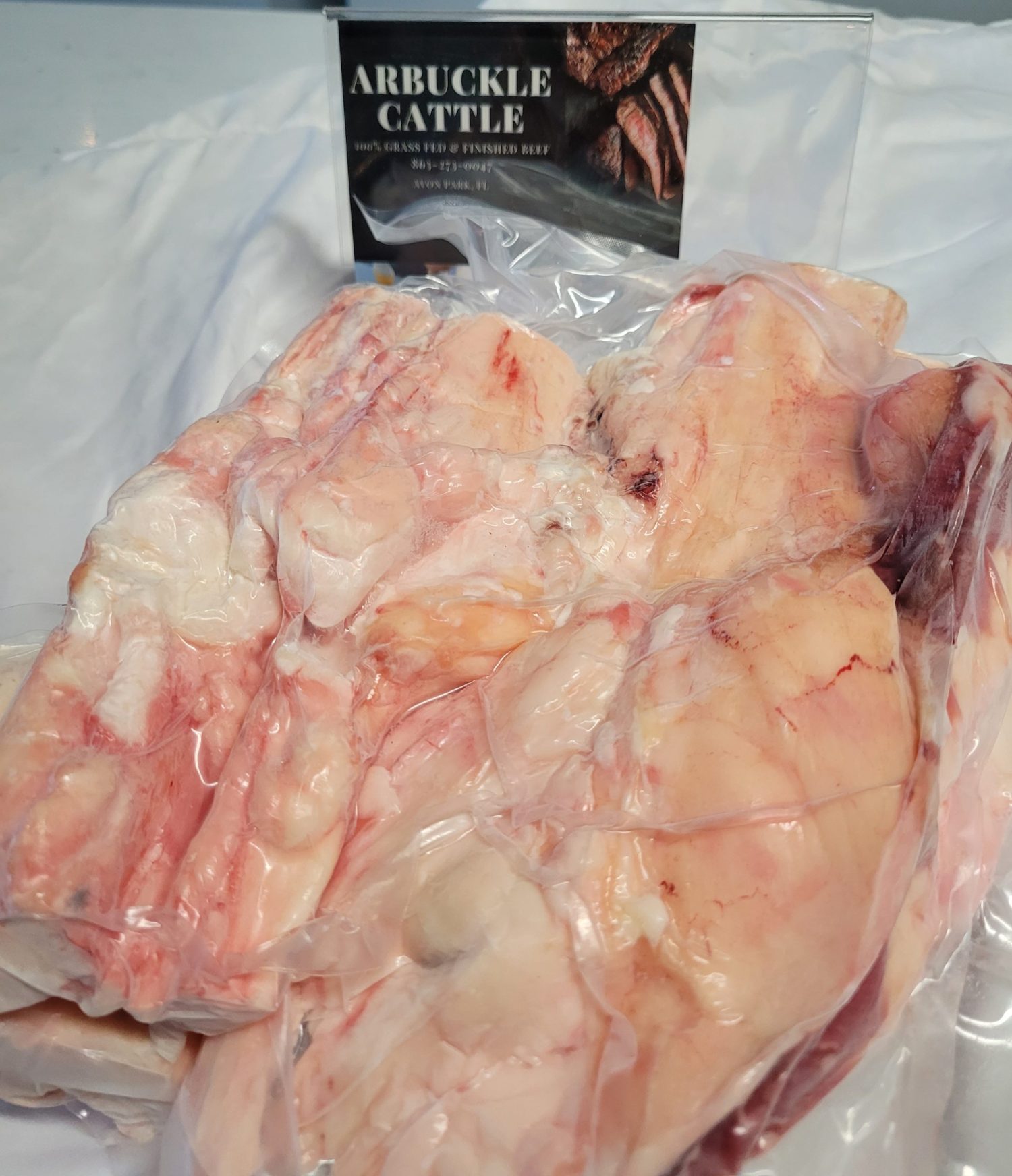 Grass fed beef (Suet Raw), sold in a 2 lbs. to 3 lbs. pack.